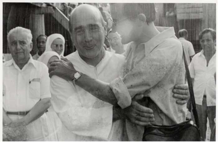 Foto: despedida en el muelle con el pueblo y P.Efren Angelini, la Hna Nuncia Magalini, la Hna Gianna Bertacco, la Hna Sandra Fulceri, Don Amadeo Rivadeneira entre otros.