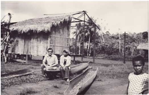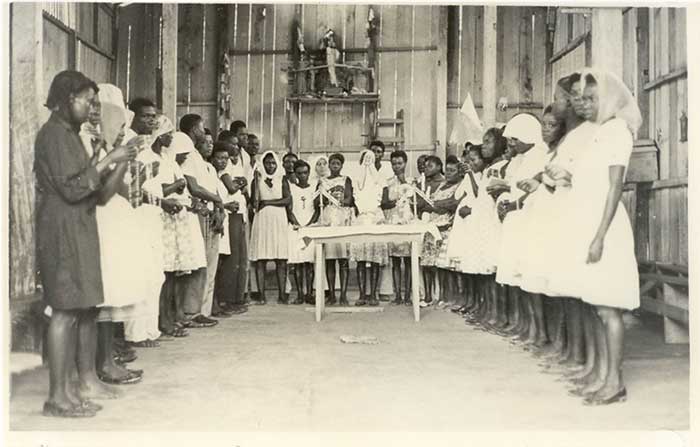 Foto con un grupo de personas en una capilla de un pueblo de la Costa Pacifica 1971